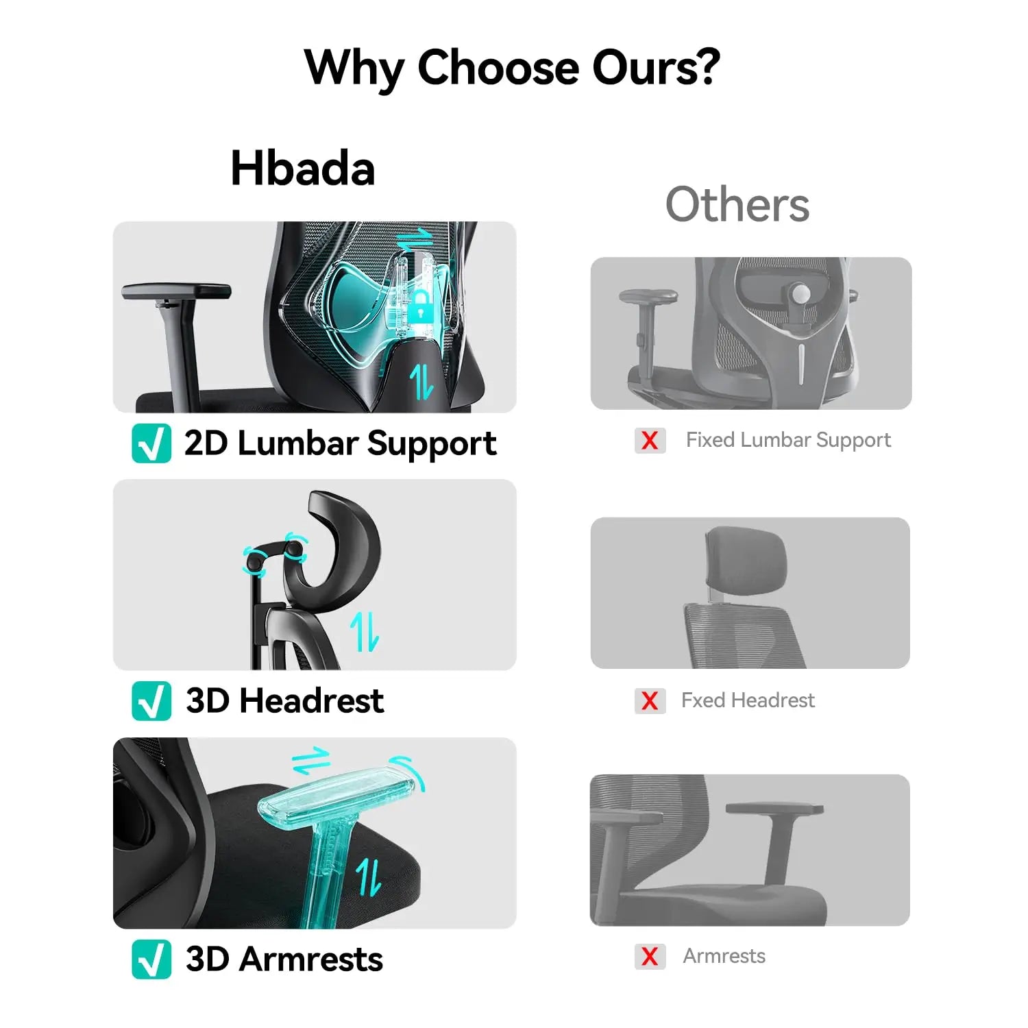 2D Lockable Lumbar Support: The 2D adjustable lumbar support of P3 Pro Desk Chair with lift and front/rear adjustment can cover more lumbar area, share lumbar pressure more evenly, fit lumbar more closely, suitable for different body shapes and sitting postures. And solves the problem that the lumbar support of general chairs can't be locked.(Front and rear lockable)
